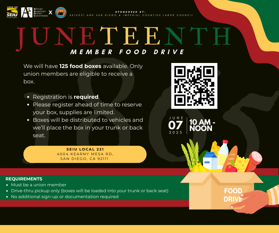 Find out moreSEIU Local 221, which represents more than 12,000 workers in San Diego and Imperial county, is a diverse, member-driven organization working in many occupations to make our counties a safe and healthy place to live, work and raise our families. We nurse our sick, educate our children, care for our seniors and provide a host of other important services throughout our communities.